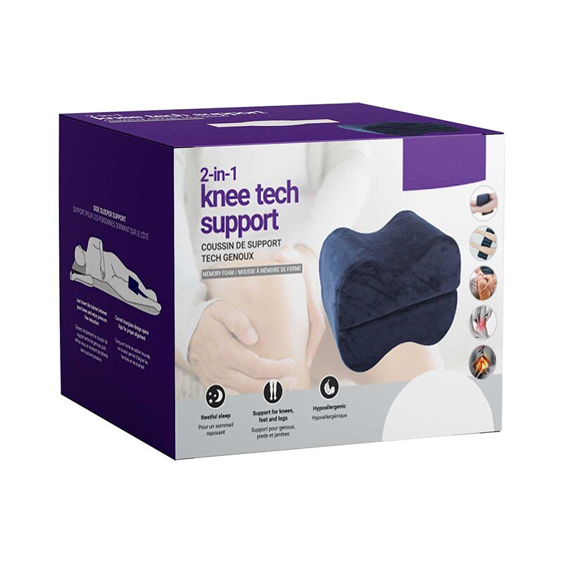 With high-density memory foam, the 2-in-1 Knee Tech Support provides optimal spine and hip alignment through improved posture and support. Curved hourglass design opens hip for proper alignment and relieves knee pressure & strain.