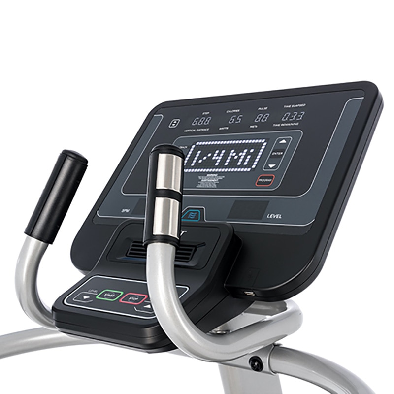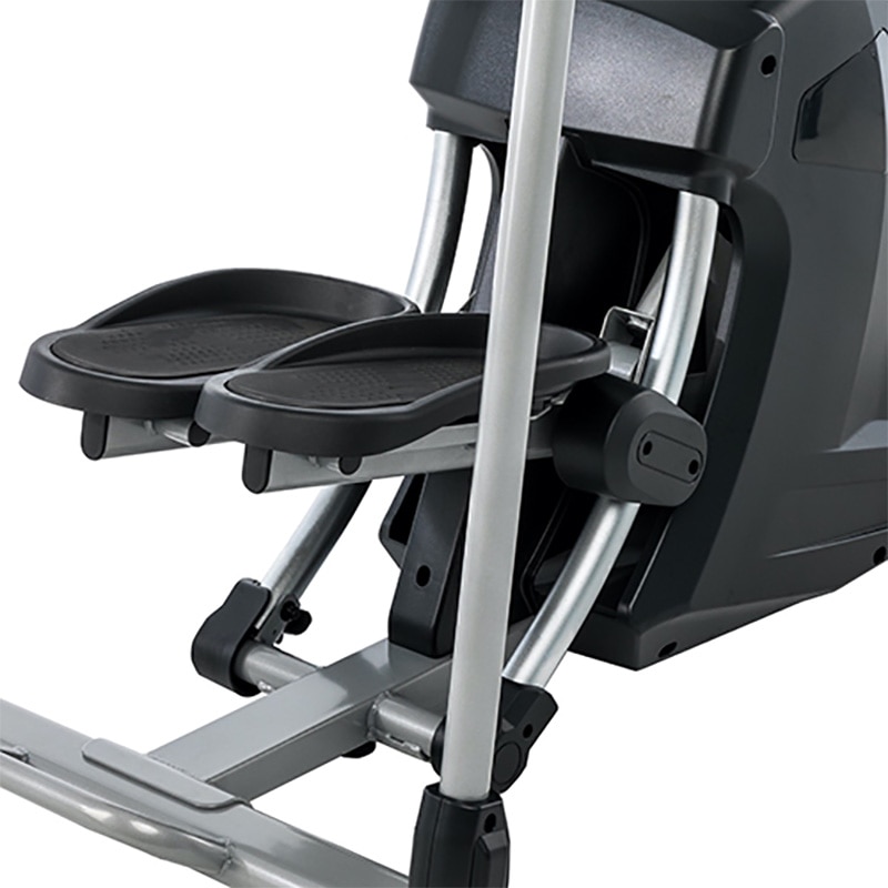 The CS800 Stepper combines the familiar dependent stepping action with an arched step-rail design and impressive 16" maximum step height for an effective lower body workout. The narrow 2" pedal spacing (Q-Factor), large cushioned pedals, and solid handrail design combine to give you an incredibly comfortable and space-efficient cardio unit.