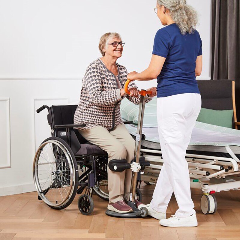 The Turner Pro is a practical aid which activates the patient when transferring from one seated position to another. It offers security for the person being transferred and will not strain the carer´s back.