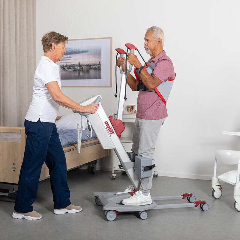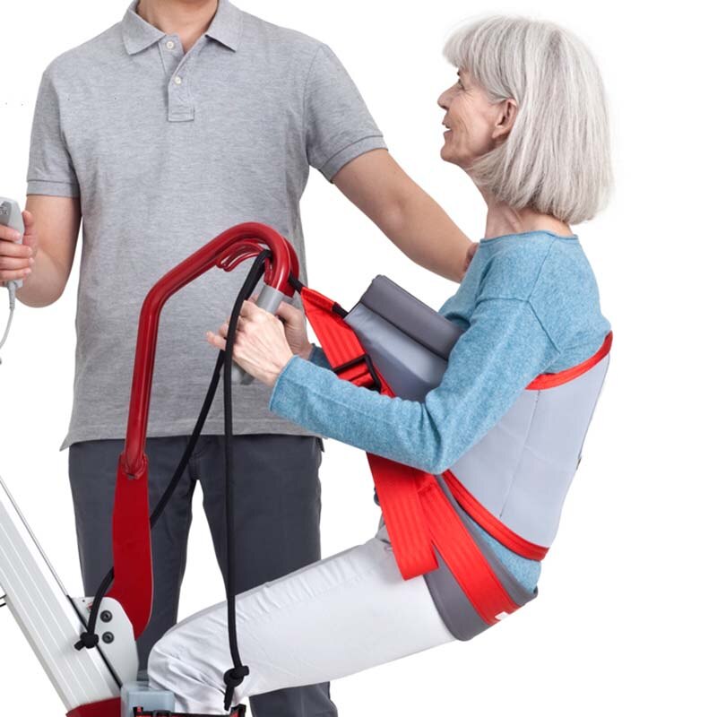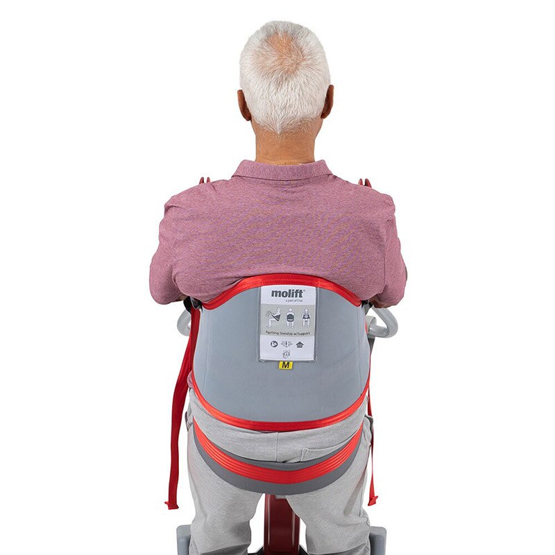 Molift RgoSling StandUp is a padded sling developed for active hoisting together with Molift Quick Raiser equiped with a two point sling bar. It provides perfect lumbar support and is the ideal sling solution for hoisting and moving between different sitting positions. The RgoSling StandUp is quickly and easily placed around the user. By virtue of the design it is ideal for use in toilet situations. Molift RgoSling StandUp has an efficient anti-slip lining to prevent the sling from sliding up. The wide back-support distributes weight and pressure evenly over a large surface which makes it more comfortable for the user. The waist belt provides additional support and stability. Molift RgoSling StandUp with Support provides additional pelvic support for users who need a little extra help to stand up.