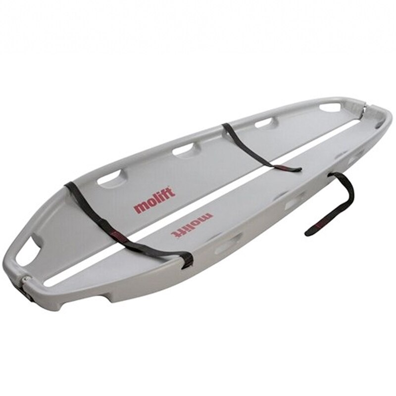 Molift Stretcher Flexible scoop stretcher ideal for horizontal hoisting situations. Flexible and easy to use Molift Stretcher is a flexible scoop stretcher for hospitals and institutions. It is designed for horizontal transfers and when sling hoisting is considered inappropriate due to medical conditions. It is an optimal solution for transfer of clients who are comatose or sedated, as well as clients with suspected spinal injuries and/or multiple fractures. Ideal for emergency care In combination with Molift standard 4-point suspension, it is ideal for emergency care needs, when time is decisive and the patient has limited mobility. Molift Stretcher can be divided in two parts in length and is therefore easy to place under the client. Molift Stretcher has five handles along each side, which provides a manual hoisting alternative from the floor and allows horizontal and lateral transfer between beds and surfaces.