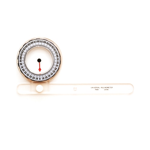 Allows quick and easy upper and lower extremity range of motion measurements. This fluid-based goniometer permits fast and accurate readings. Standard base for small surfaces (like the hand) and long base for larger surfaces (arm or leg) are included.